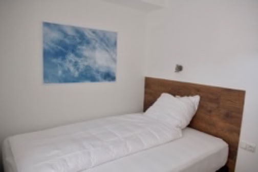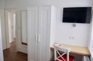 Zweites Schlafzimmer mit Boxspringbett 140 x 200, Schrank, Schreibtisch, Flachbild-TV